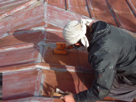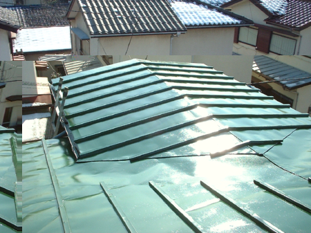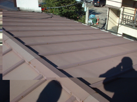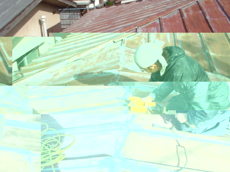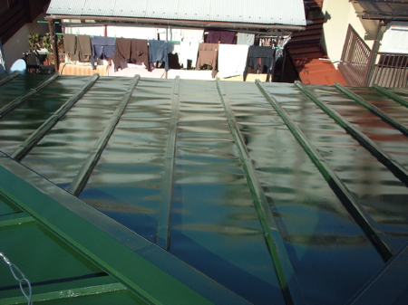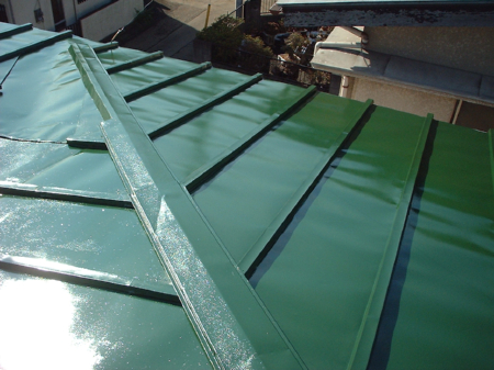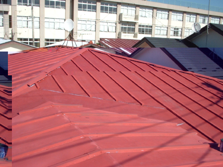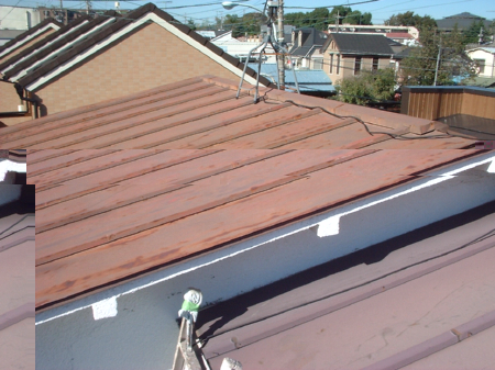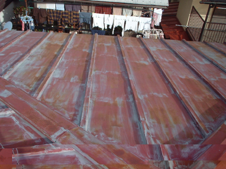 築年数30年の理容店のトタンやねです。今までに2度の塗装をしているそうですが、やはりサビが目立ちます。